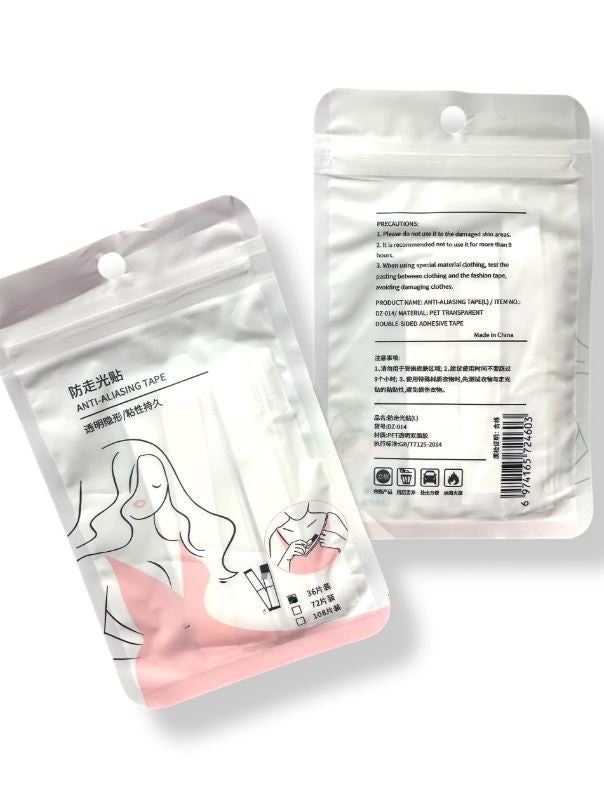 Läpinäkyvä teippi, joka ei jätä jälkiä ihoon eikä bikineihin. Pieniin korjailuihin pitämään bikinit paikallaan. Pito ei ole niin kova kuin Bikini Bite -liimoilla, mutta on hienovaraisempi bikineille ja rusketukselle.